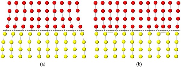 Fig. 1 shows that imperfect lattice matching can be accommodated by elastic strain to maintain coherency (Fig. 1a), while larger lattice misfit favors the formation of semi-coherent interfaces with misfit dislocations (Fig. 1b). In recent years, concentrated multicomponent alloys (MCAs), including high-entropy and medium-entropy alloys, have emerged as a promising class of advanced structural materials. Unlike conventional alloys, MCAs contain several principal elements in high concentrations, resulting in unique characteristics such as high configurational entropy, severe lattice distortion, and complex chemical interactions. These features create new opportunities for designing alloys that can simultaneously achieve high strength, excellent ductility, and outstanding damage tolerance.