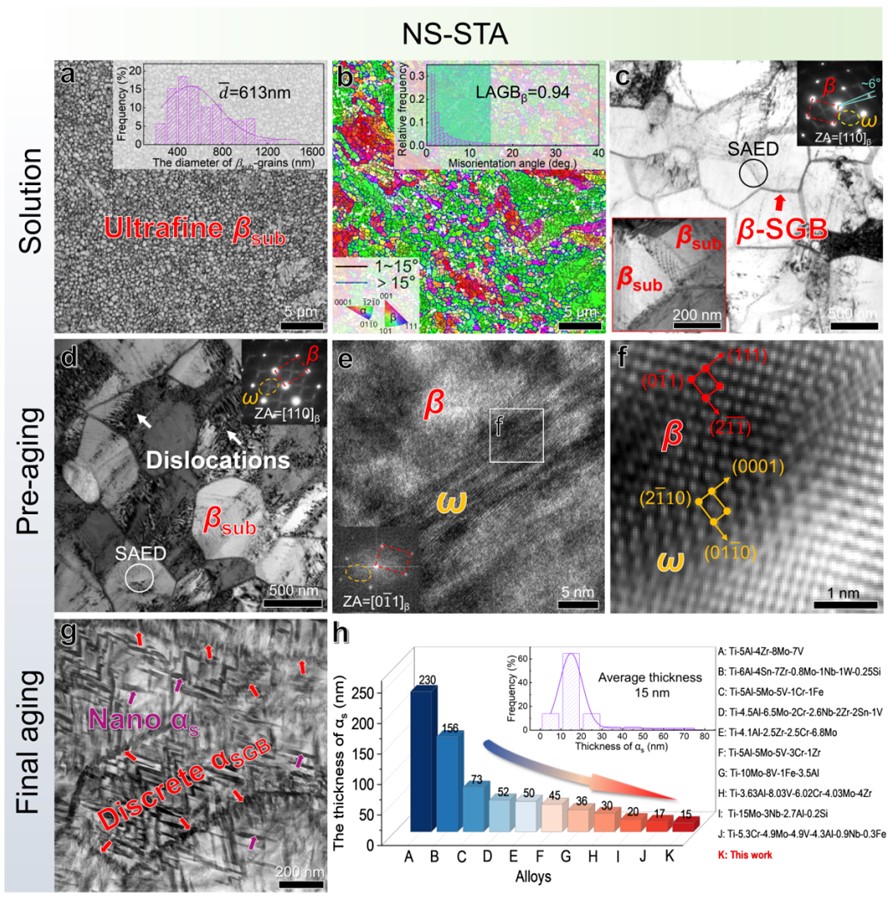 This study not only pushes the strength limit of titanium alloys but also demonstrates that the “nano-twinned α precipitates + ultrafine β subgrains” design strategy is fully compatible with industrial-scale processing, highlighting its significance for developing engineering-grade ultra-high-strength titanium alloys. Moreover, the proposed microstructural design concept is broadly applicable to aluminum alloys, magnesium alloys, steels, and complex multicomponent alloys, particularly those produced by additive manufacturing that inherently contain dislocation-based substructures.