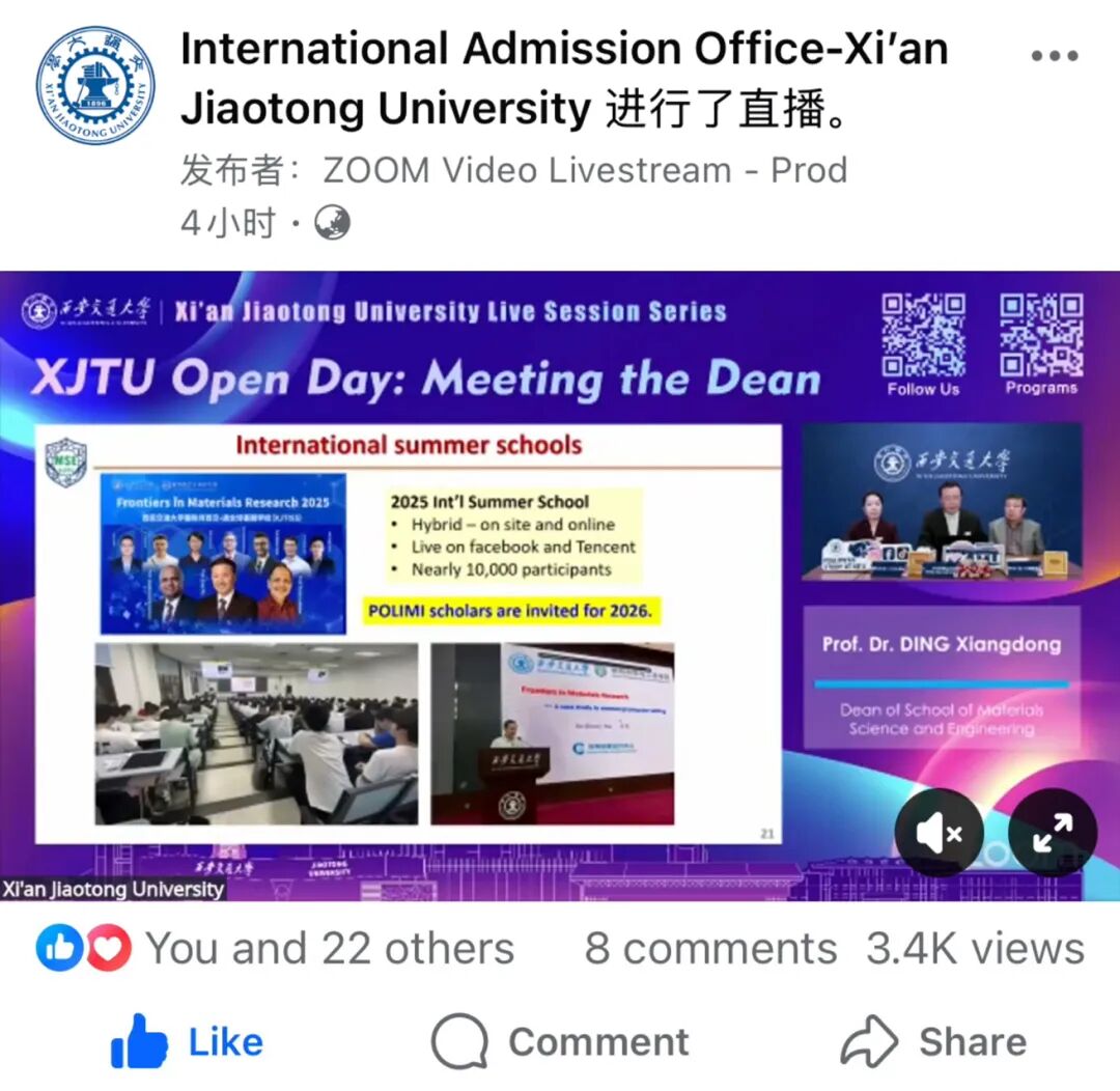 This session garnered over 3.4kviews and more than 30 interactions, offering invaluable guidance to international students for their future academic and career paths. Professors expressed their hope that international students with an interest in materials science would consider joining MSE and collaborate with them to propel advancements and developments in the field.